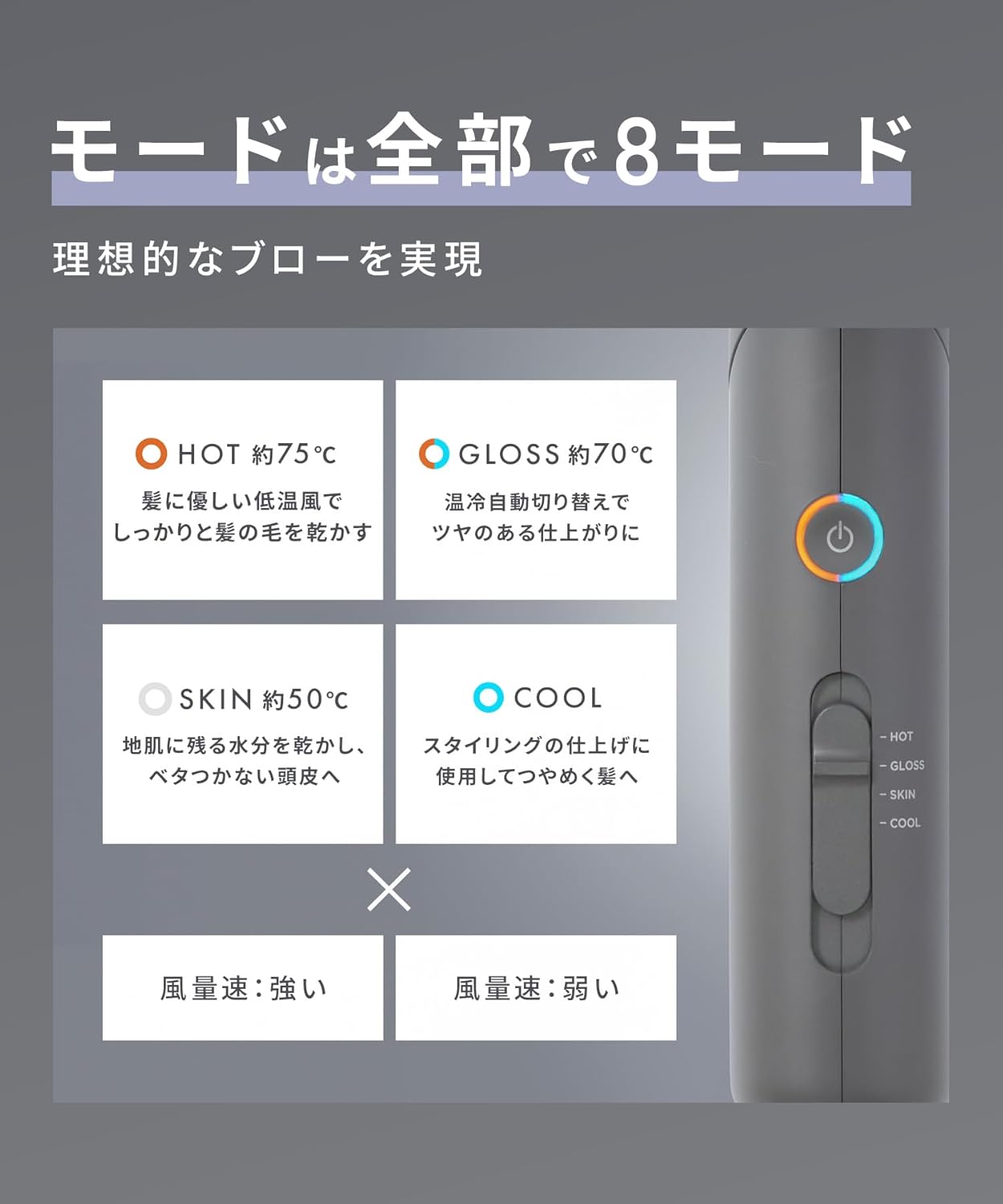 低溫但高效率的風速設定,讓你在避免過高熱傷害的同時快速乾髮,給髮絲更溫和的呵護。